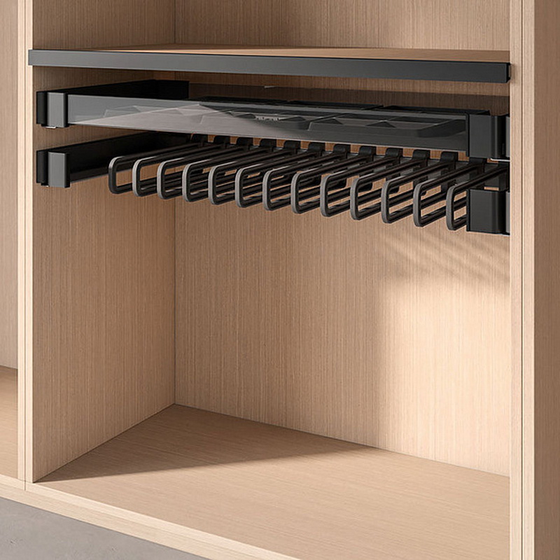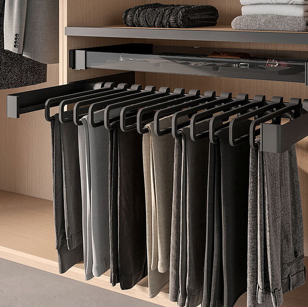 Держатель для брюк и юбок выдвижной Conero (Конеро) 450 мм, W 610-670 мм, D 475 мм со штангой и 7-ю вешалками.