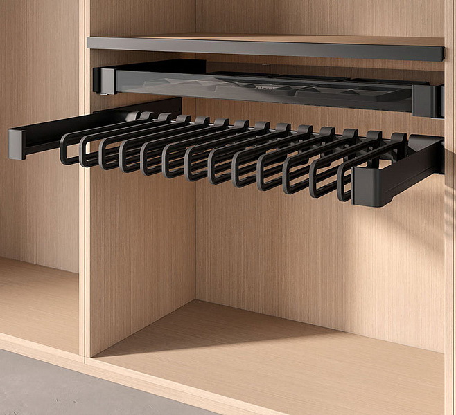 Держатель для брюк и юбок выдвижной Conero (Конеро) 450 мм, W 410-470 мм, D 475 мм со штангой и 5-ю вешалками.