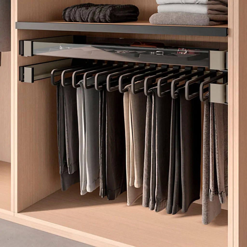 Создайте с помощью cистемы хранения Конеро — удобную функциональную гардеробную или шкаф купе. Используйте раму-держатель выдвижную Conero с вешалками для белья Конеро.