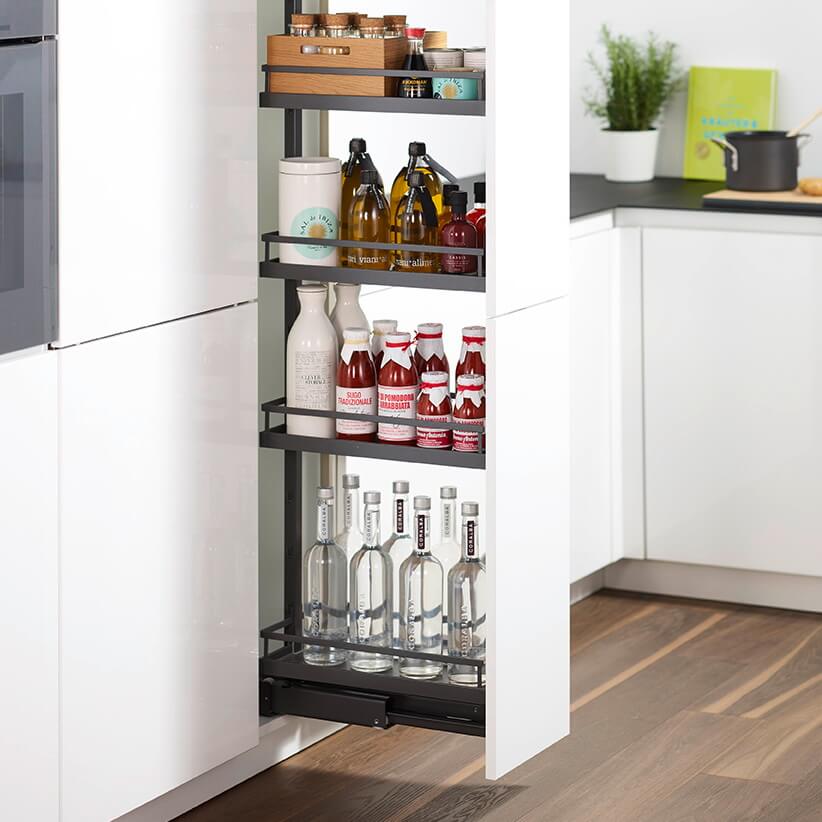Диспенса – это оптимальное использование внутреннего пространства шкафа-колонны: регулировка уровня полок по высоте, плавный и бесшумный ход, это все в целом обеспечивает максимальную вместительность и комфорт.