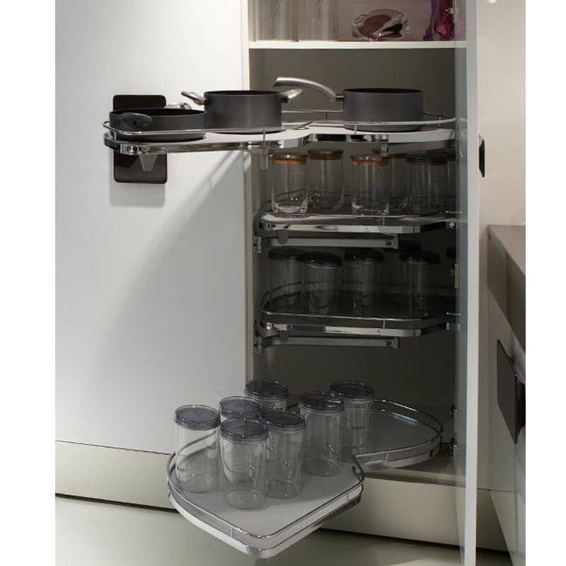 Комплект Леманс под фасад 600 мм с четырьмя полками, левый, цвет Хром - уникальный механизм для прямых угловых тумб. Совершая поворотно-выдвижное движение он обеспечивает полное выдвижение полок из тумбы. В результате вы без усилий получаете полный и беспрепятственный доступ к содержимому.