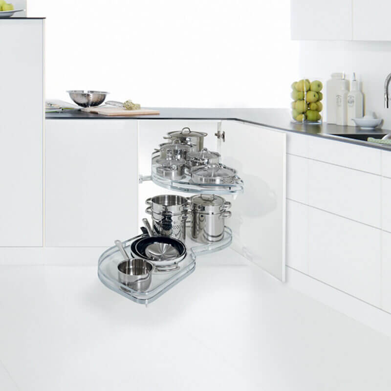 Комплект Леманс под фасад 400 мм с двумя полками, левый, цвет Хром - уникальный механизм для прямых угловых тумб. Совершая поворотно-выдвижное движение он обеспечивает полное выдвижение полок из тумбы. В результате вы без усилий получаете полный и беспрепятственный доступ к содержимому полок.