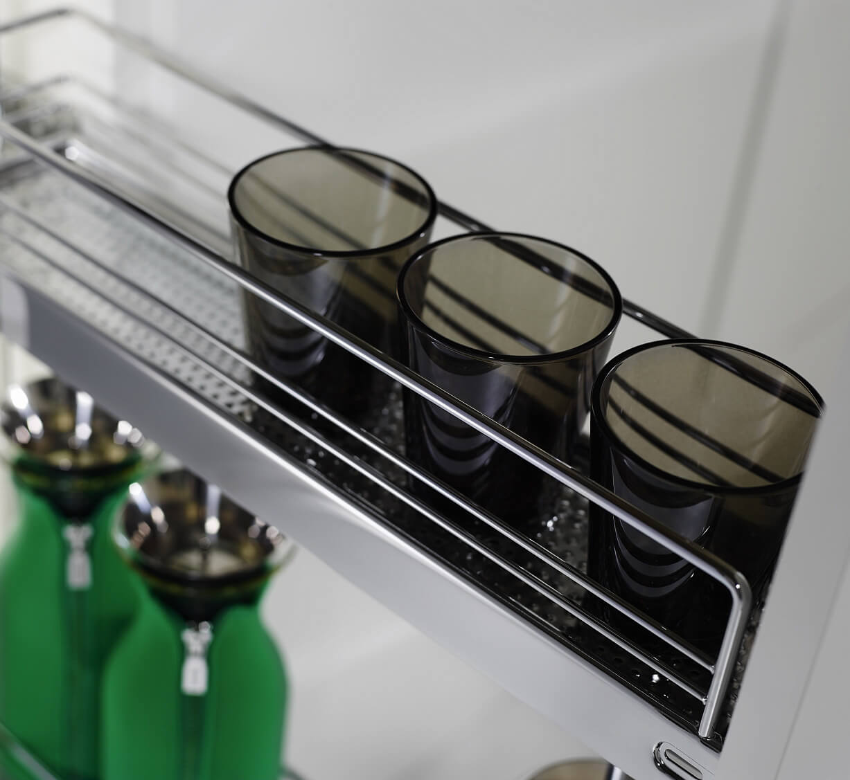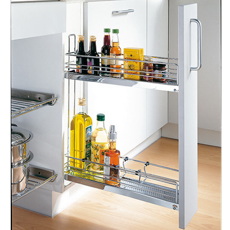 Механизмы бутылочницы 150 мм эффективно задействуют узкие ниши вашей кухни