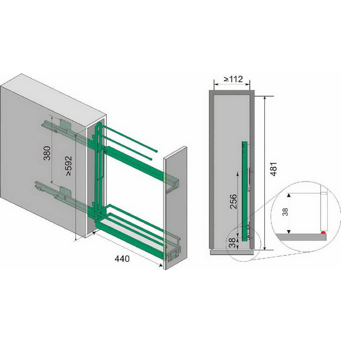 Механизмы бутылочницы 150 мм эффективно задействуют узкие ниши вашей кухни