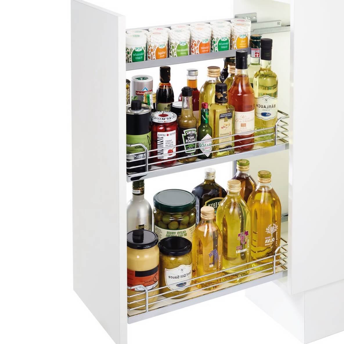 Комплект "Комфорт", правый для нижних тумб с шириной фасадов 250 мм. Обеспечивает полное выдвижение содержимого 3-х полок на которых может располагаться разнообразная кухонная утварь. Механизм обеспечивает боковой доступ к содержимому тумбы и крепится к боковине корпуса слева. Полки можно располагать на различной высоте.