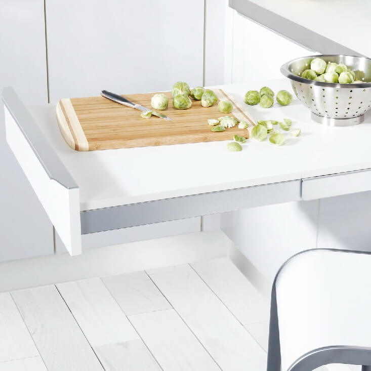 Топ Флекс 450 - 900 мм - выдвижной стол-телескоп. Телескопический столик полностью спрятан за фасадом и выдвигается тогда, когда он Вам нужен. Полностью вытянутый столик состоит из двух поверхностей, которые также быстро складываются, как и раскладываются. Идеальное решение для маленьких компактных кухонь. Значительно экономит места, сохраняя привычный комфорт. Подходит для тумб шириной 450 - 900 мм.
