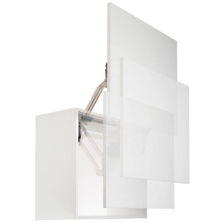 Механизм подъемников FREE slide обладает плавным и бесшумным открыванием и закрыванием, а также возможностью остановки фасада в любом положении по всей траектории движения.