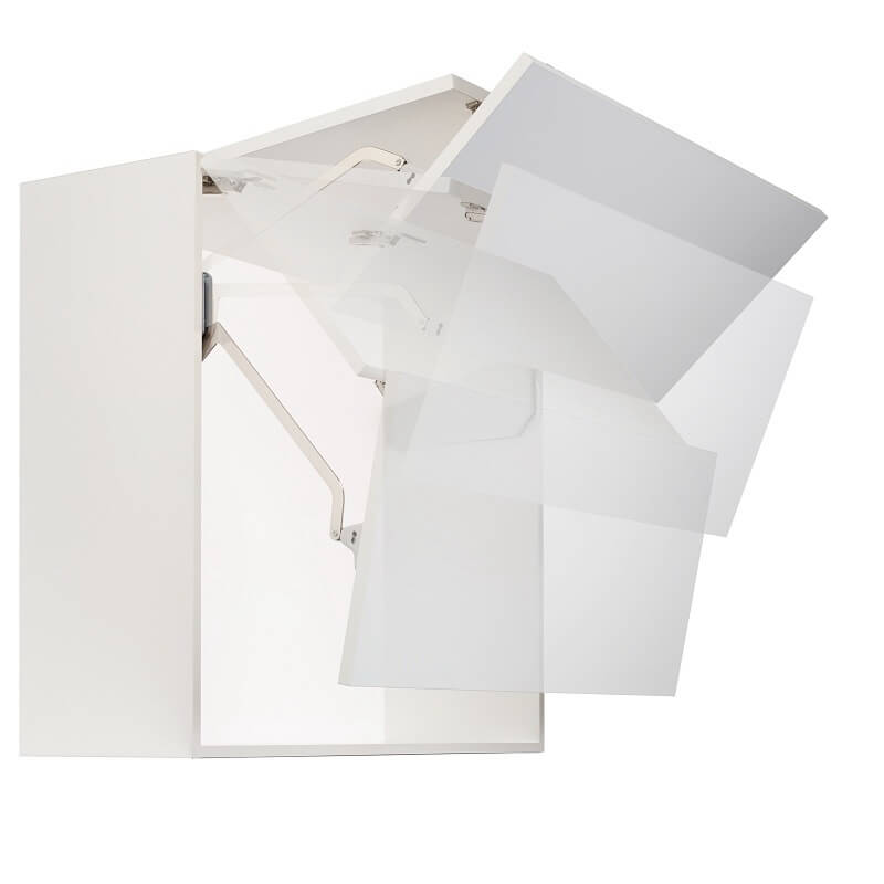 Используется для навесных шкафов со складными фасадами. Открывается вверх, обеспечивая легкий доступ в шкаф. Мягко бесшумно открывается и закрывается благодаря встроенным демпферам. Обеспечивает максимальный доступ к внутреннему пространству. Угол открывания фасада опционально можно ограничить до 90° (ограничитель в комплект не входит, заказывается отдельно). Обратите внимание, декоративные крышки, и межфасадные петли приобретаются отдельно.