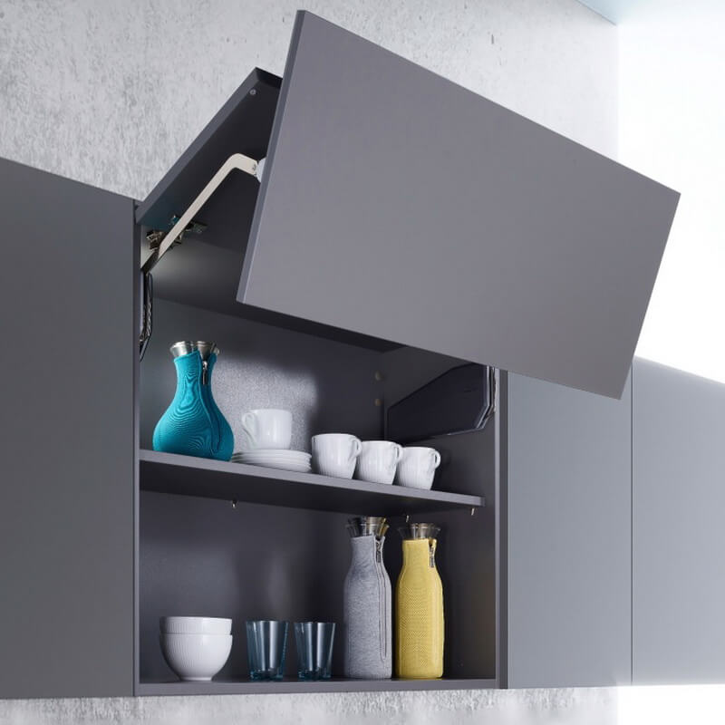 FreeFold Short - это комплект из двух складных подъемников для деревянных фасадов и алюминиевых рамок. Это один из самых популярных подъемников. Подъемник FREE Fold Short - это укороченная версия всем знакомого классического подъемного механизма FREE fold. Версия SHORT стала на 2 см короче предшественника, поэтому минимальная необходимая глубина для встраивания составляет всего 270 мм.