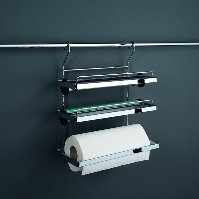 Держатель Линеро для бумажных полотенец, пищевой пленки и фольги. Уникальный элегантный дизайн держателя способен украсить интерьер кухни, а качественное изготовление гарантирует большой срок службы. Держатель имеет высококачественное гальваническое покрытие. Поверхность устойчива к воздействию влаги, не царапается и долго сохраняет отличный внешний вид.