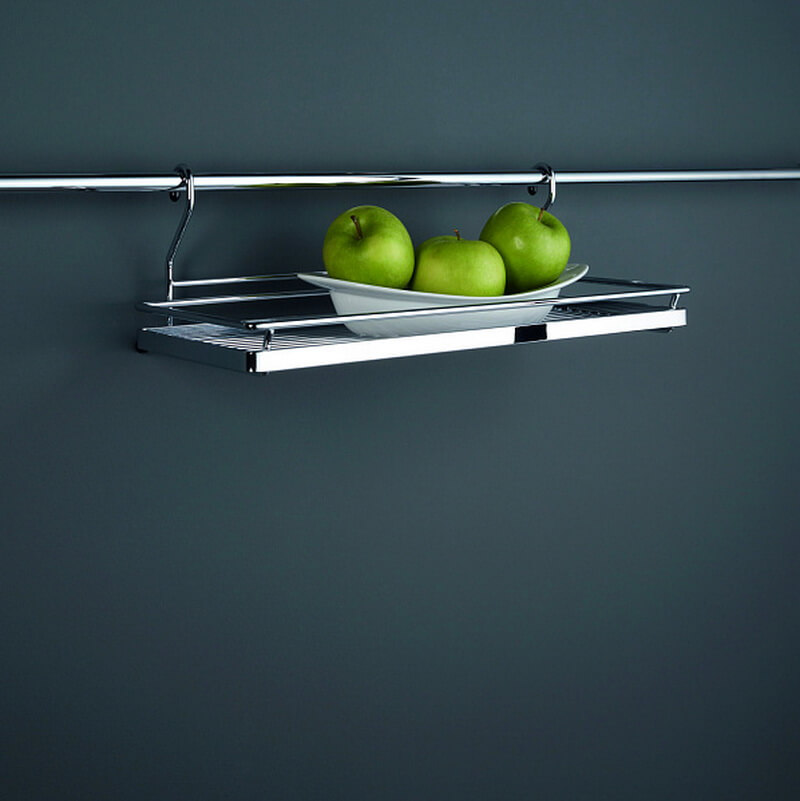 Полка навесная малая Линеро имеет размер 455x185x150 мм. Покрытие - ХРОМ глянцевый. Обладает элегантным современным дизайном который прекрасно впишется в интерьер кухни. Полка Линеро имеет высококачественное гальваническое покрытие. Она не боится влаги, не царапается и долго сохраняет отличный внешний вид.
