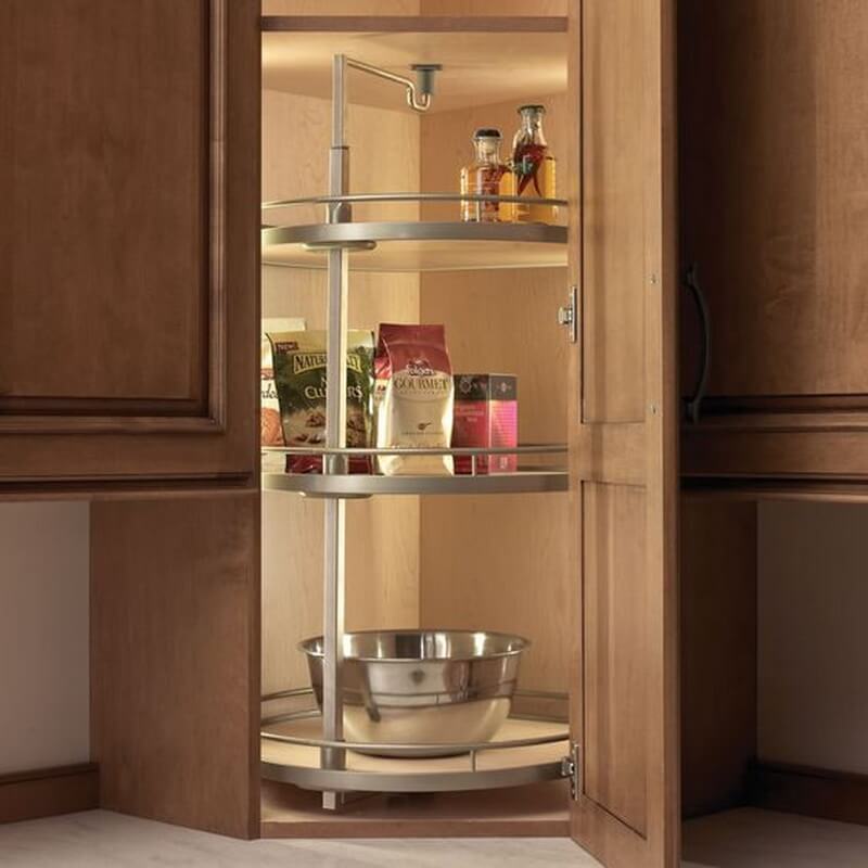 Механизм Твистер Титан на 3 полки - идеальное решение для хранения кухонной утвари в угловых верхних шкафах. Механизм Твистер обеспечивает 360-градусный обзор предметов, которые вам необходимы. Простым движением руки вы получаете полный обзор всего, что находится на трех полках. Полки имеют антискользящее покрытие, которое надёжно удерживает все содержимое во время использования. Для удобства полки регулируются по высоте. Ось смещена к краю полок, тем самым позволяет полноценно использовать всю площадь полок.