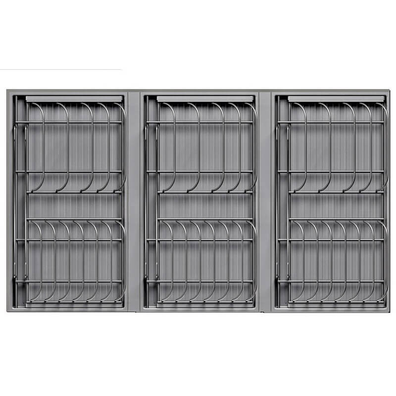 Сушка выдвижная Ф111, Дайнинг Агент 900 мм включает в себя раму с креплением к фасаду на которой выдвигается три модуля для посуды большие. Цвет решеток - Антрацит. Цвет поддонов - Антрацит.