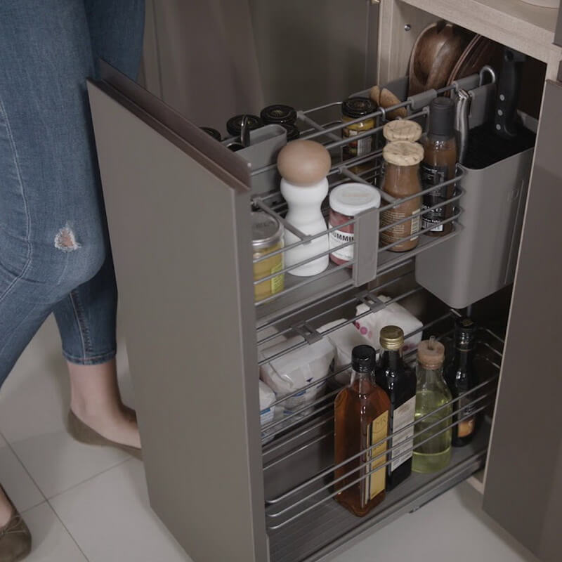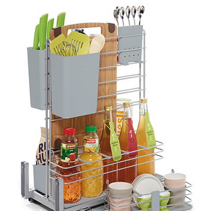 Кукинг Агент, 300 мм цвета ТИТАН - практичный выдвижной механизм для нижних тумб. Позволяет с удобством размещать разнообразную кухонную утварь, необходимую для приготовления пищи, такую как ножи, кухонные приборы, разделочные доски, специи, бутылочки и многое другое.