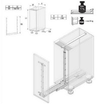 Диспенса Джуниор Слим - комплект для организации хранения в нижних шкафах (тумбах) с шириной фасада 200 мм. Он обеспечивает полное плавное выдвижение содержимого и удобный доступ к нему с двух сторон.