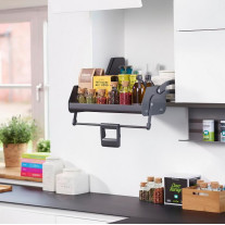 Механизм Ай мув (iMove) с одной полкой цвет АНТРАЦИТ под ширину фасада 900 мм. Открывает новые возможности при хранении кухонной утвари. Устанавливается в подвесном шкафу. Лёгким движением руки механизм опускает полку вниз, где вы уже без усилий можете взять с нее необходимые вещи. В нижнем положении полка фиксируется для свободного доступа. При этом нижняя полка корпуса остаётся свободной и может быть использована для более тяжелых предметов, что гарантирует максимальное использование внутреннего пространства подвесного шкафа.