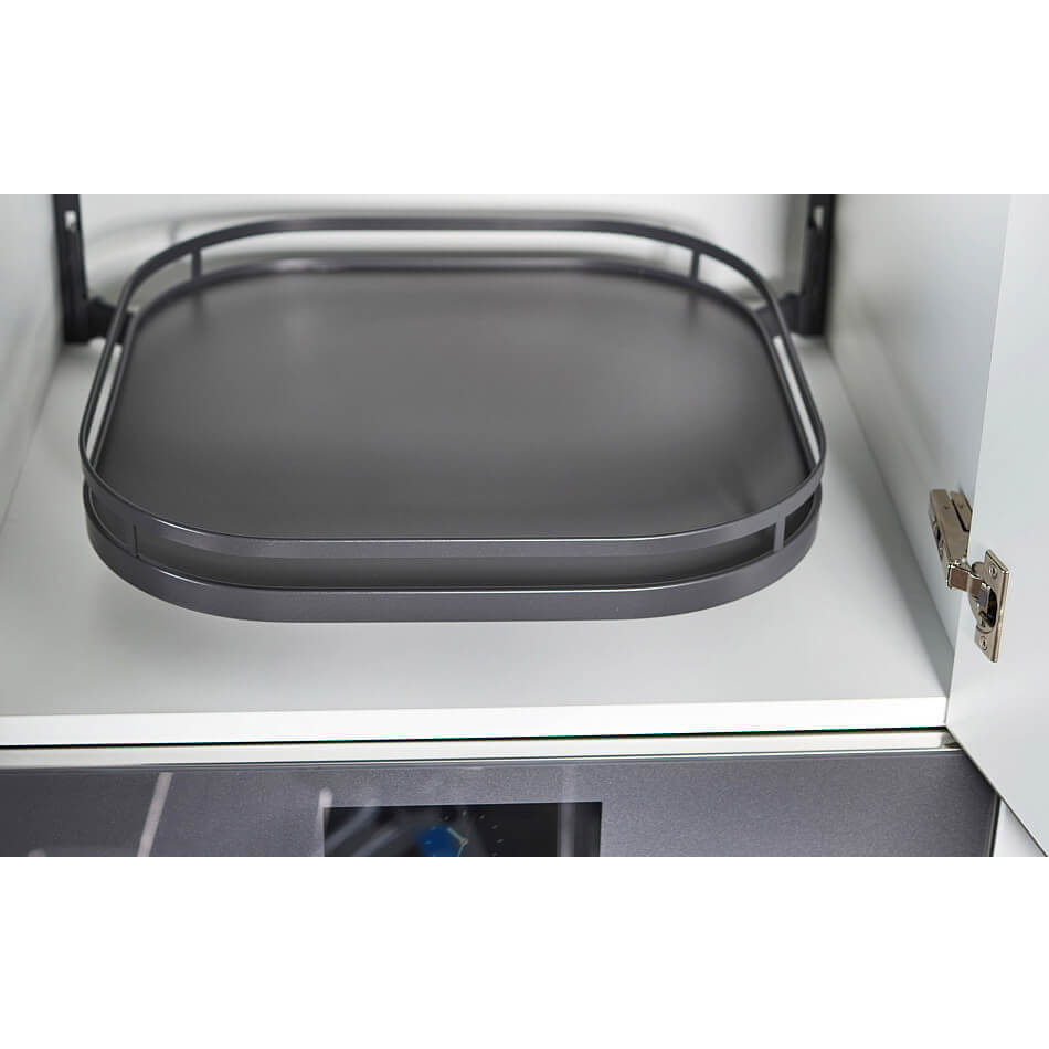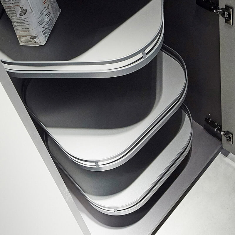 Торн Моушн для ширины фасада 600 мм с тремя полками цвет Антрацит - вращающийся механизм, который дает возможность максимально использовать труднодоступные места на кухне. Классический пример такого места - верхний шкаф над над встроенной бытовой техникой, например, холодильником.