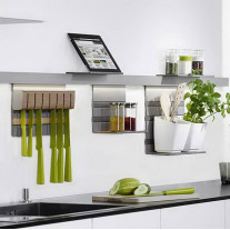 ЛинероМозаик - многофункциональный профиль шириной 1500 мм. Его можно укомплектовать дополнительными навесными элементами, которые позволяют создавать индивидуальные композиции для кухонного гарнитура. Кроме того, на нем имеется специальный паз позволяет для встраивания светодиодной подсветки, которая дает мягкое освещение и рассеивает свет на элементах. ЛинероМозаик может быть прикручен либо приклеен к стене (допускается использовать его в сочетании со стеклянной стеновой панелью).