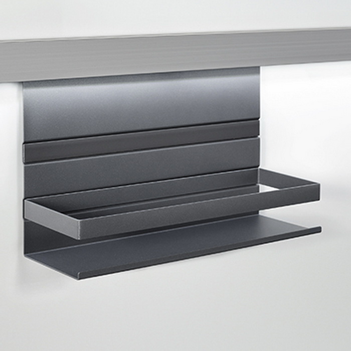 Навесная полка 350x110x200 мм с рейлингом позволяет удобно размещать над рабочей зоной столешницы емкости с сыпучими продуктами, небольшие баночки, контейнеры и бутылочки. Полка устойчива к воздействию влаги и долго сохраняет отличный внешний вид. Покрытие - многослойное порошковое напыление.