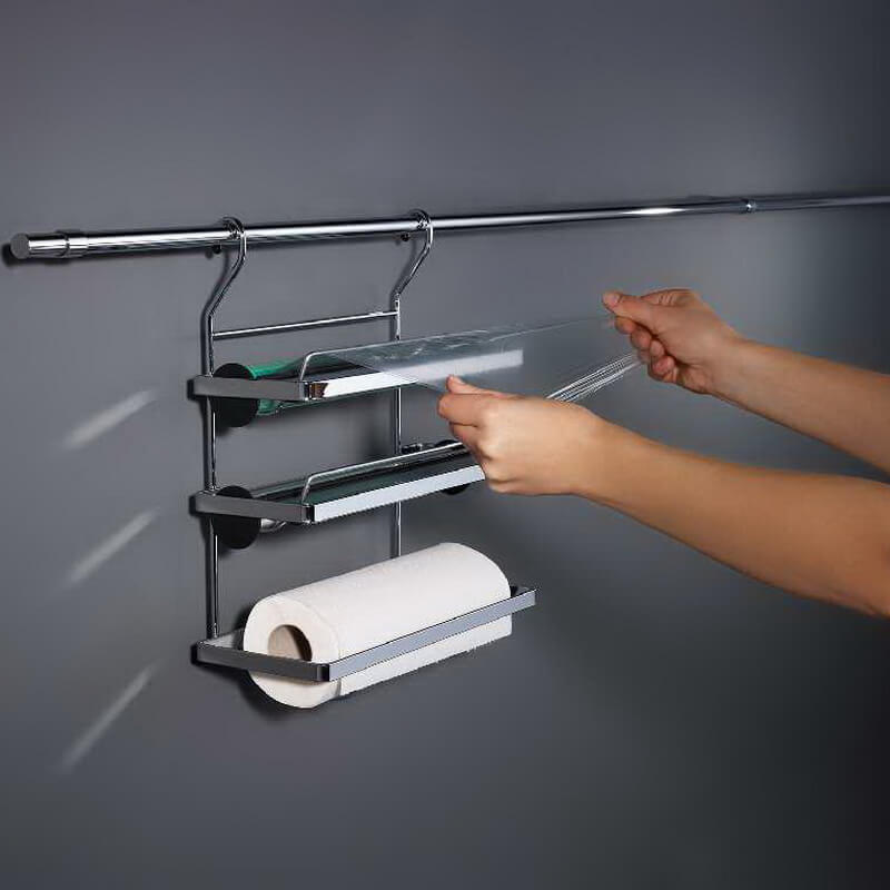 Держатель Линеро для бумажных полотенец, пищевой пленки и фольги. Уникальный элегантный дизайн держателя способен украсить интерьер кухни, а качественное изготовление гарантирует большой срок службы. Держатель имеет высококачественное гальваническое покрытие. Поверхность устойчива к воздействию влаги, не царапается и долго сохраняет отличный внешний вид.