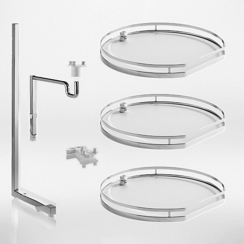 Механизм Твистер Титан на 3 полки - идеальное решение для хранения кухонной утвари в угловых верхних шкафах. Механизм Твистер обеспечивает 360-градусный обзор предметов, которые вам необходимы. Простым движением руки вы получаете полный обзор всего, что находится на трех полках. Полки имеют антискользящее покрытие, которое надёжно удерживает все содержимое во время использования. Для удобства полки регулируются по высоте. Ось смещена к краю полок, тем самым позволяет полноценно использовать всю площадь полок.