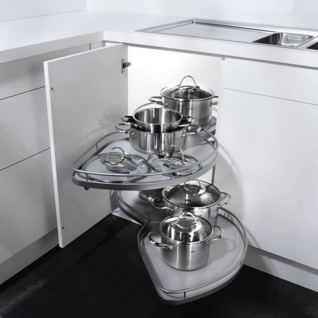Комплект Леманс под фасад шириной 600 мм с двумя полками, правый, цвет Хром - уникальный механизм для прямых угловых тумб. Совершая поворотно-выдвижное движение он обеспечивает полное выдвижение полок из тумбы. В результате вы без усилий получаете полный и беспрепятственный доступ к содержимому полок.